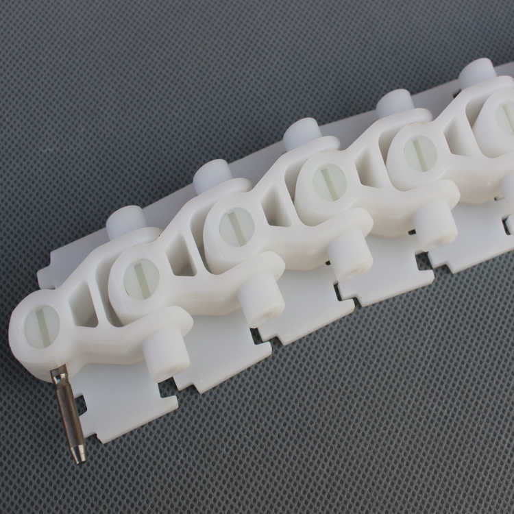 2.材質(zhì):鏈板材質(zhì):聚甲醛(POM),銷軸材質(zhì):冷軋奧氏體不銹鋼。