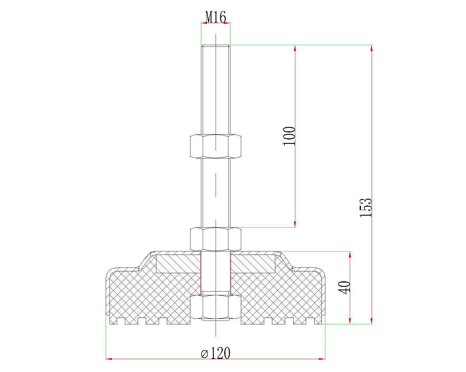 830 | D120固定底腳帶橡膠底盤 M16*100 | 不銹鋼+橡膠 | 1.35 |