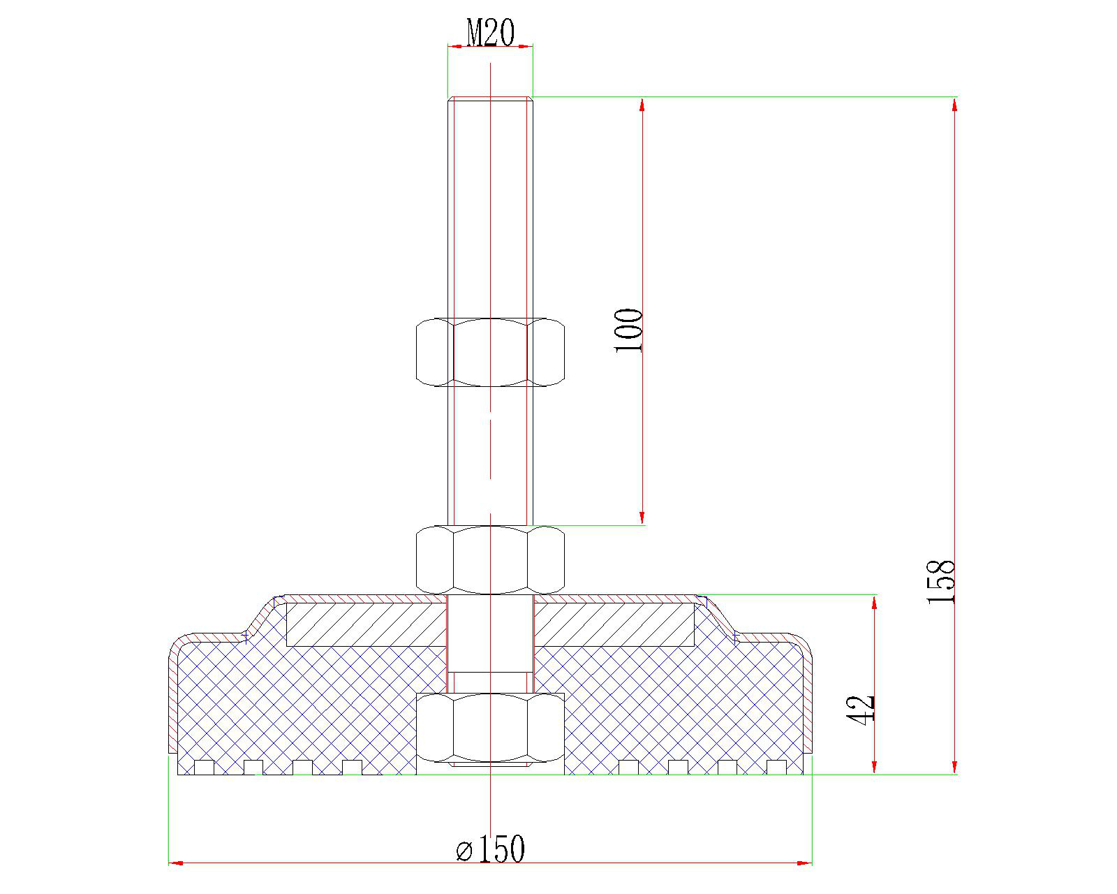 831 | D180固定底腳帶橡膠底盤 M20*100 | 不銹鋼+橡膠 | 2.17 |