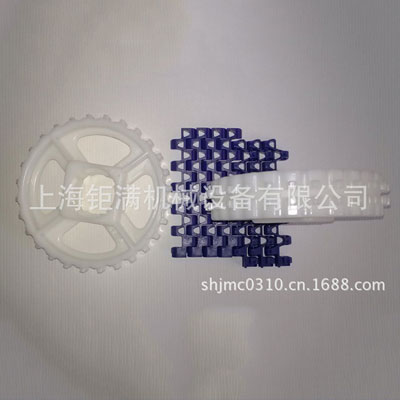 模塊式網(wǎng)帶用延伸在輸送帶整個寬度上的塑料鉸接銷,把注塑成型的網(wǎng)帶組裝成互鎖單元。這種方法增加了輸送帶的強(qiáng)度,并可以組接成任何需要的寬度和長度。擋板和側(cè)板也可以用鉸接銷互鎖,成為塑鋼輸送帶整體部件之一。