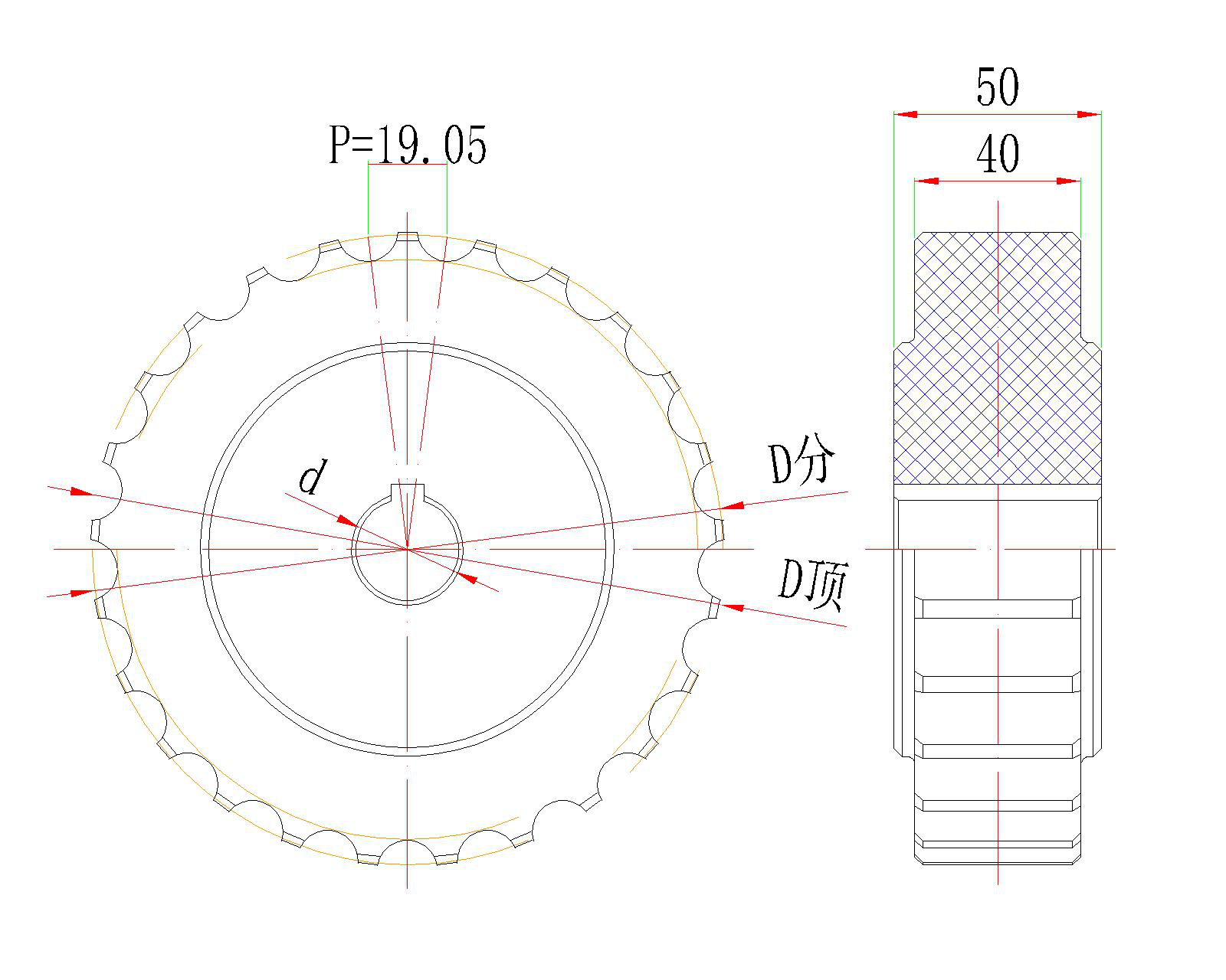 鏈輪型號 | 齒數(shù) | D分(mm) | D頂(mm) | d孔徑(mm) |