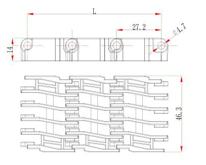 2.材質(zhì):網(wǎng)帶材質(zhì):聚甲醛(POM);銷軸材質(zhì):聚丙烯(PP)